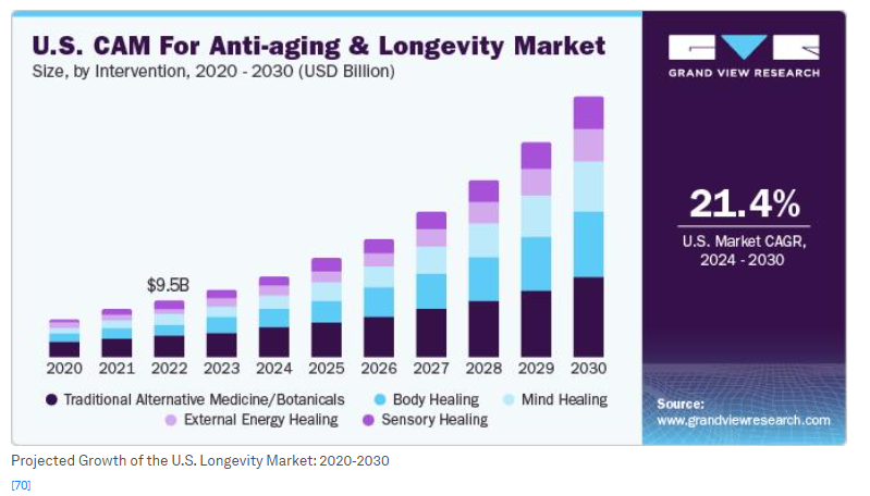 - “Anti-aging & Longevity Market ….” Grand View Research, https://www.grandviewresearch.com/industry-analysis/complementary-alternative-medicine-anti-aging-longevity-market-report. Accessed 27 January 2025.